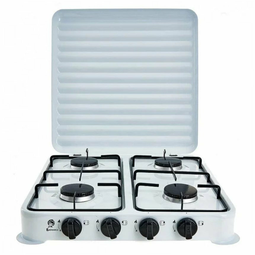 Плитка газовая "василиса" ВА-6504, 4 конфорки, с крышкой, белая