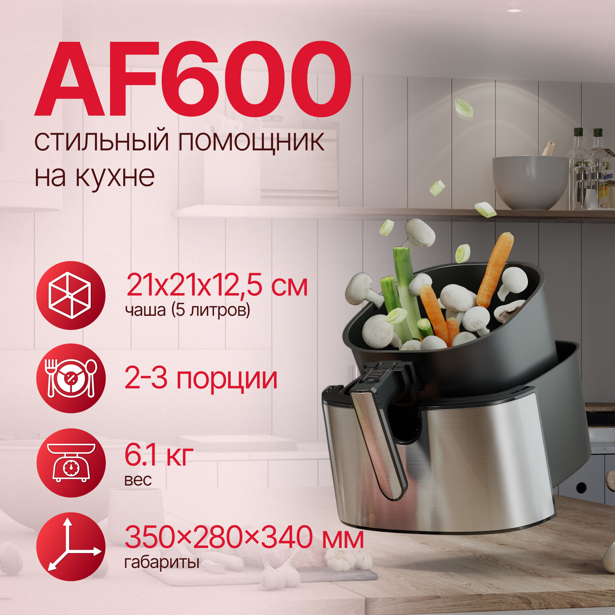 | Плюсы: | Сенсорное управление, большой диапазон температур, которые можно выставлять для приготовления блюд. Корпус из пластика, легко очищается от пятен и жира. |