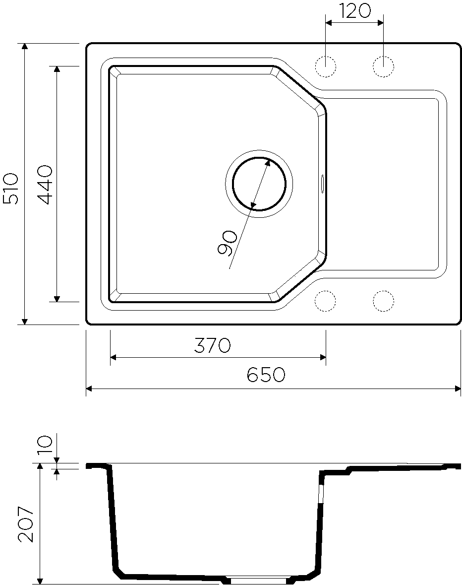 | Плюсы: | Цена, дизайн, качество, намечены отверстия под смеситель и дозатор |