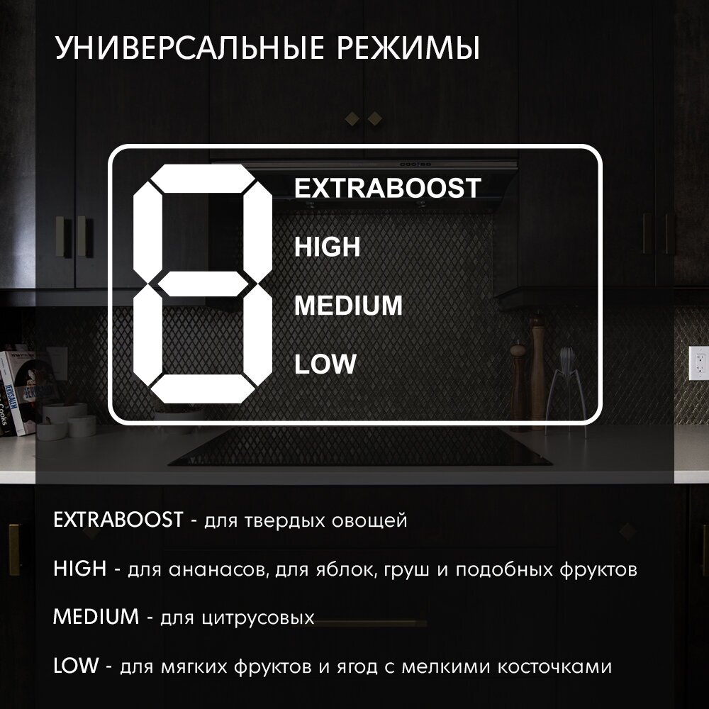 | Плюсы: | Есть несколько режимов, мощная, быстро выжимает сок |