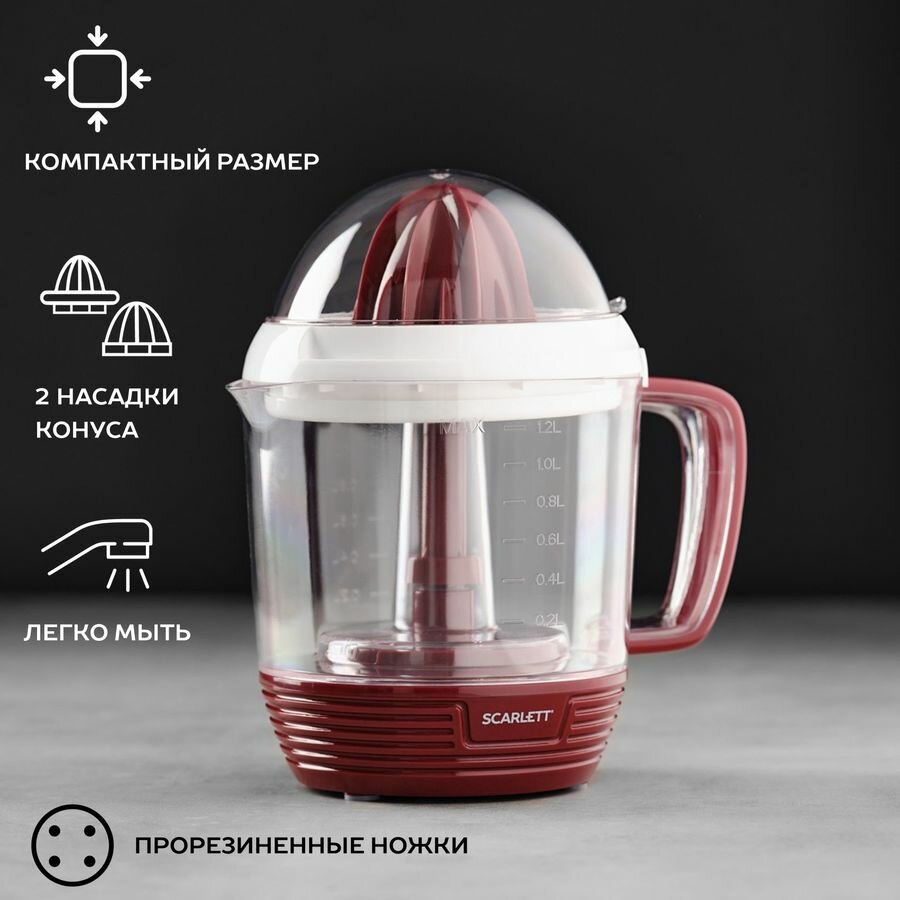 Соковыжималка SCARLETT SC-JE50C08, цитрусовая, красный и белый интересное: