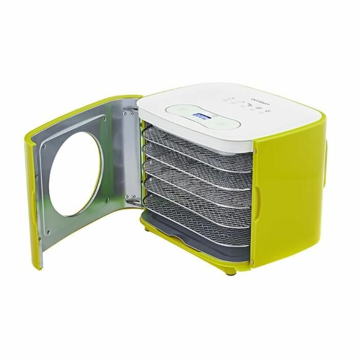 | Дополнительная информация | LED-дисплей и цифровое управление; в комплект входят 5 решеток из нержавеющей стали для сушки и поддон для крошек; дверца имеет смотровое окошко из закаленного стекла; можно сушить фрукты, овощи, травы, грибы, приготовить вяленое мясо или рыбу, а также пастилу |