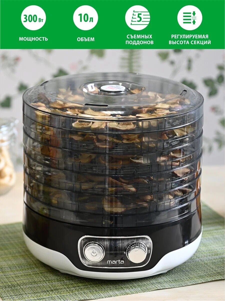 Купить MARTA MFD-2052PS 7 поддонов-5+2 для пастилы черный жемчуг сушилка д/фруктов,овощей