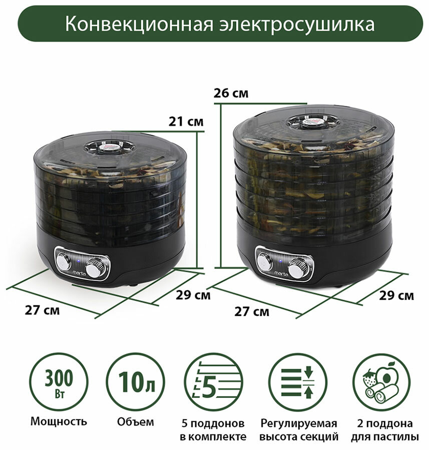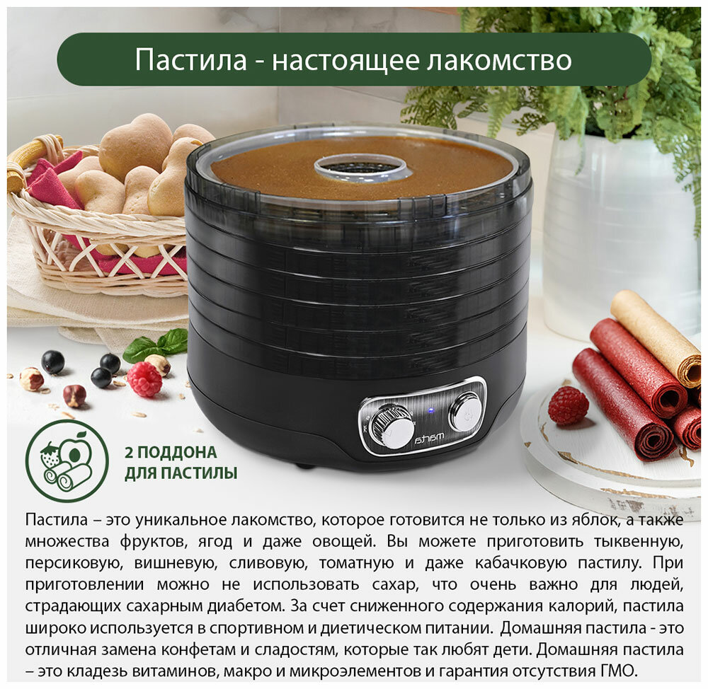 СохранитьMARTA MFD-2052PS 7 поддонов-5+2 для пастилы черный жемчуг сушилка д/фруктов,овощей интересное: