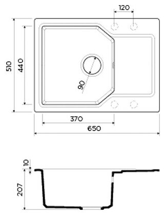| Плюсы: | Цена, дизайн, качество, намечены отверстия под смеситель и дозатор |