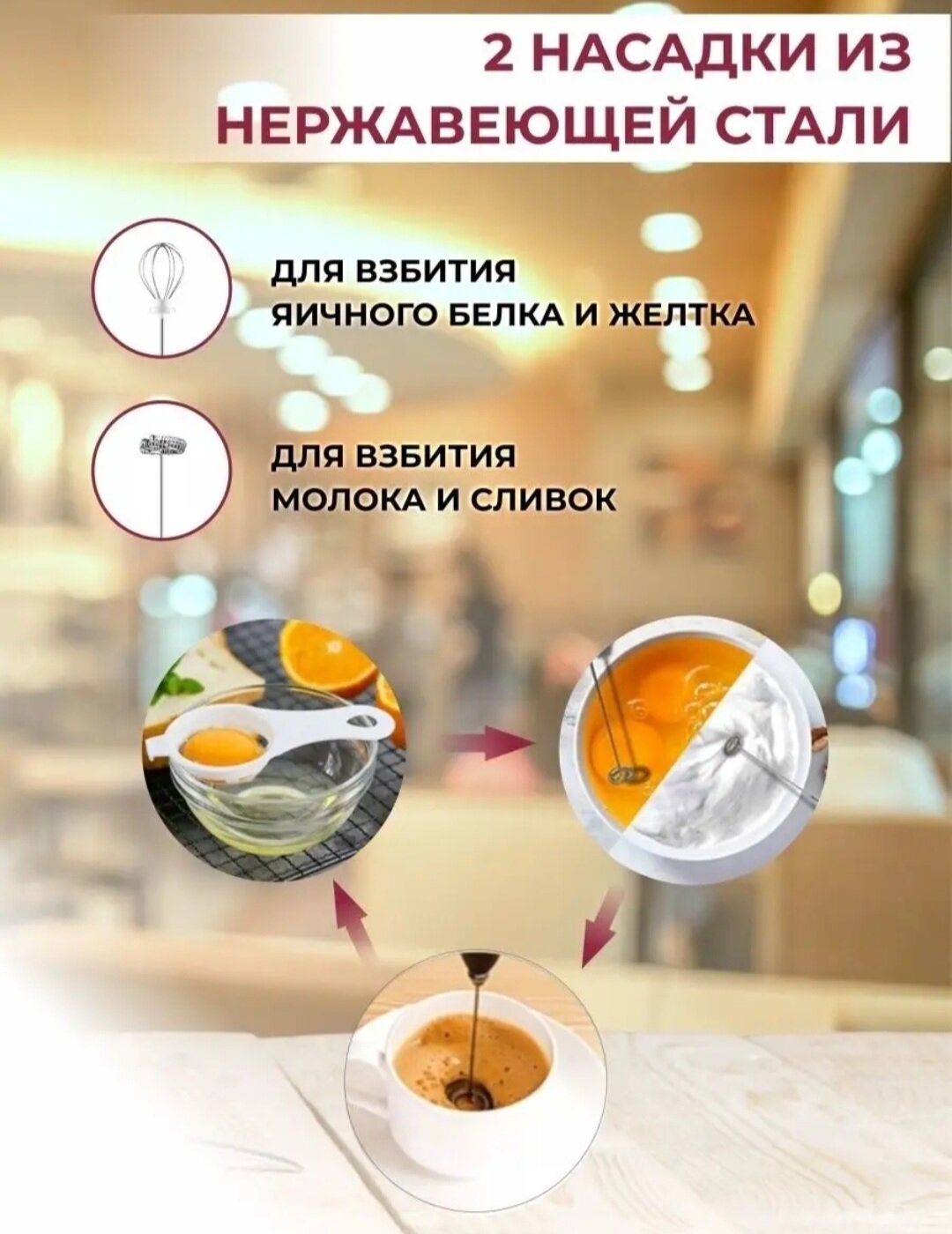 Вспениватель для молока, сливок и яиц премиальный. Капучинатор, венчик, мини-миксер интересное:
