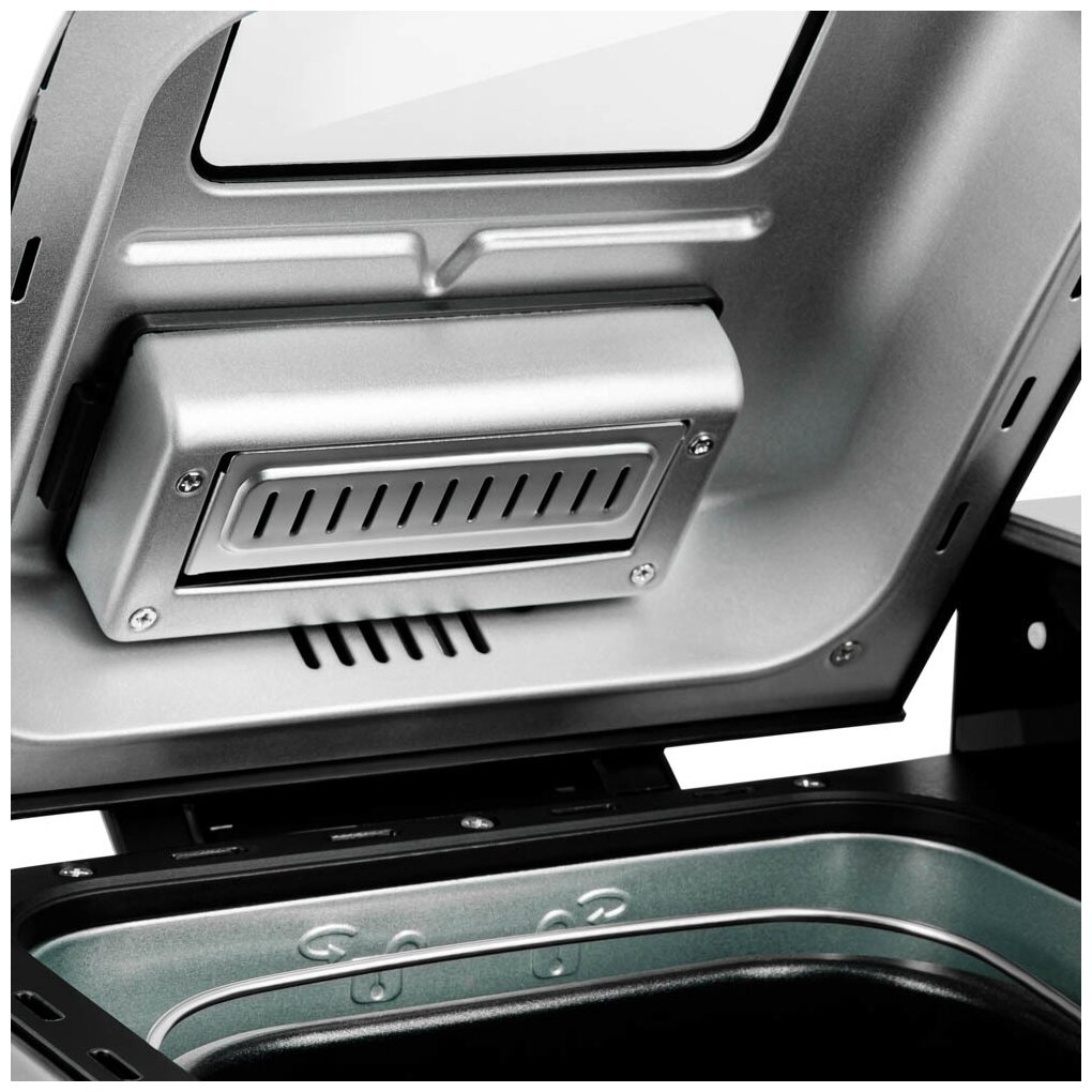 Качественный вид, прочный корпус, удобная откидная дверца и есть окошко сверху. Хорошие и разнообразные программы для выпечки хлеба. Удобный подсвечивающийся дисплей и, в целом, управление.
