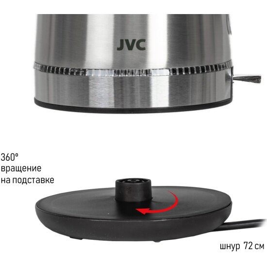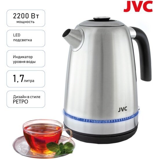 Чайник электрический JVC JK-KE1720 2200 Вт, 1,7 л, серебристый