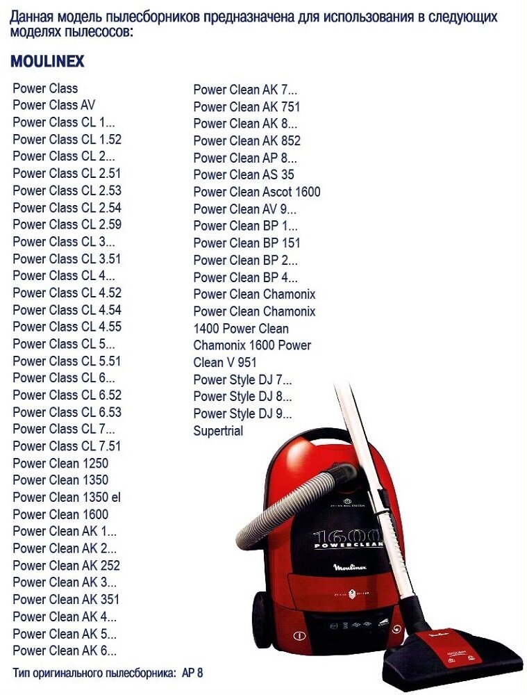 | Отзыв: | подходит для MOULINEX power clean 1300 |