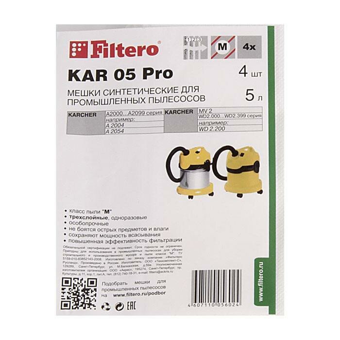 Мешки для промышленных пылесосов Karcher Filtero KAR 05 Pro (4 штуки) (PN: KAR 05 Pro).