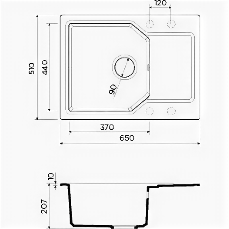| Плюсы: | Цена, дизайн, качество, намечены отверстия под смеситель и дозатор |