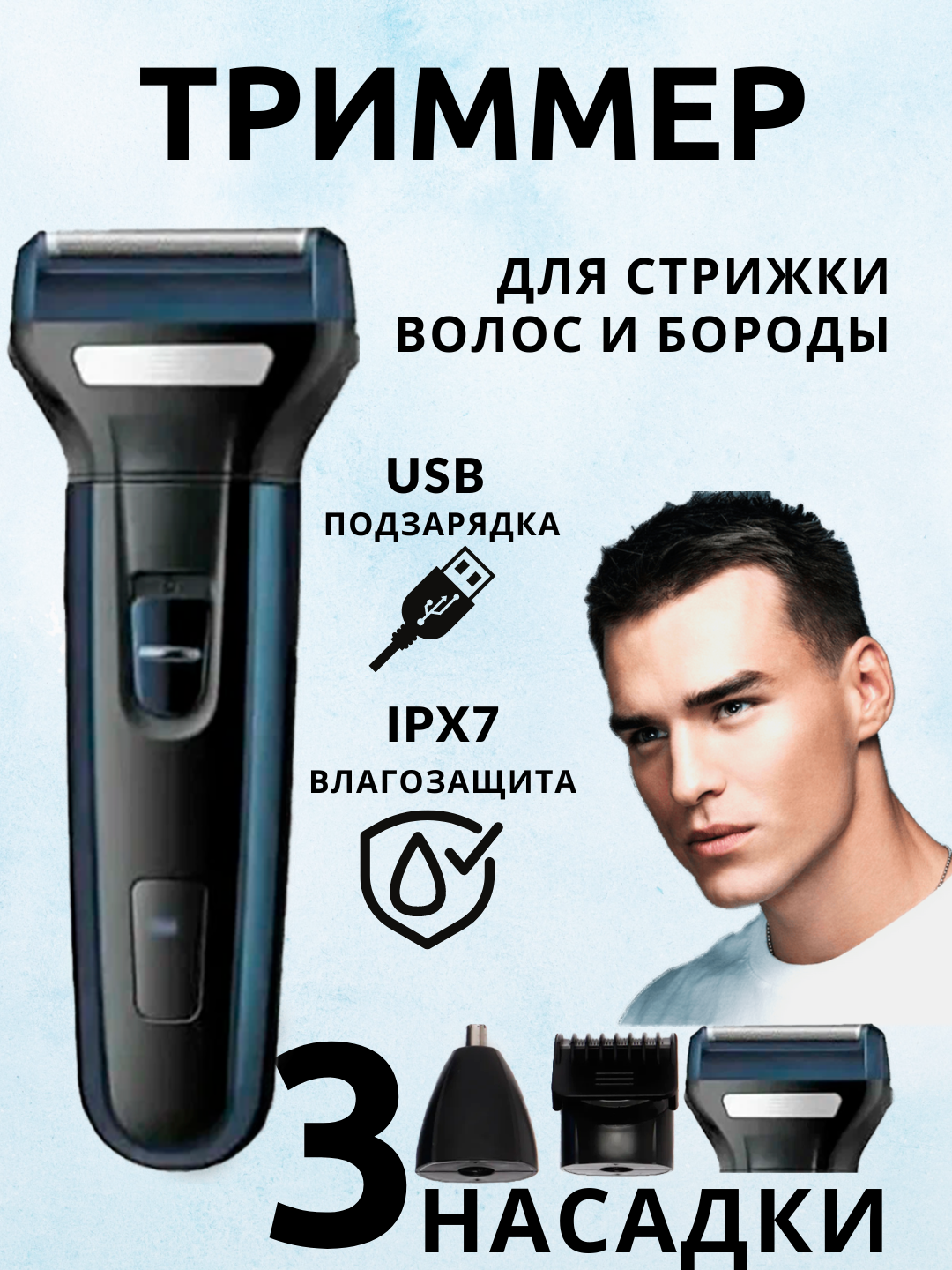 | Минусы: | Сама насадка триммер не очень хорошо бреет |