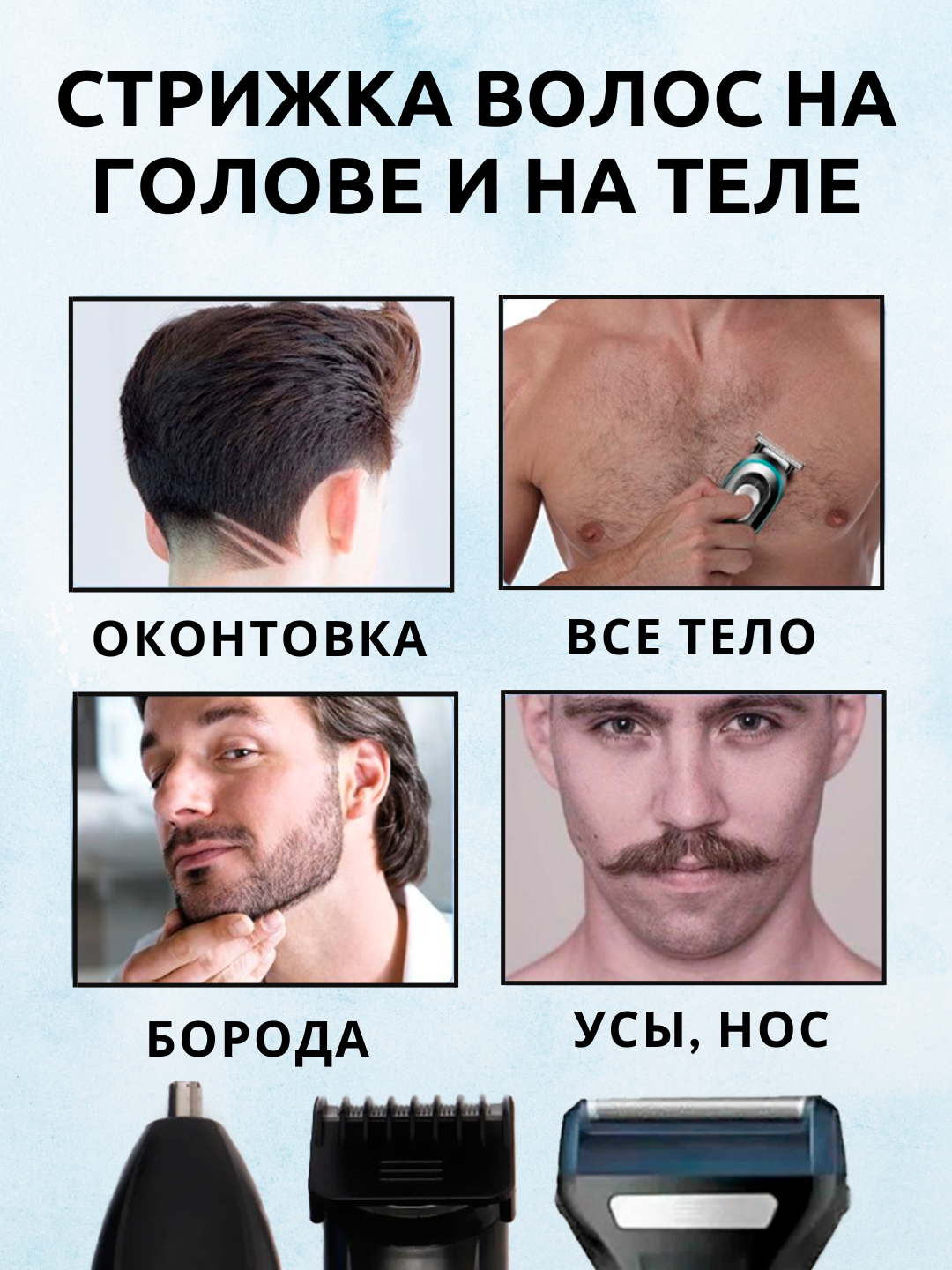 | Назначение | для тела / для бороды и усов / для стрижки в носу и ушах / для секущихся кончиков / для стрижки волос |