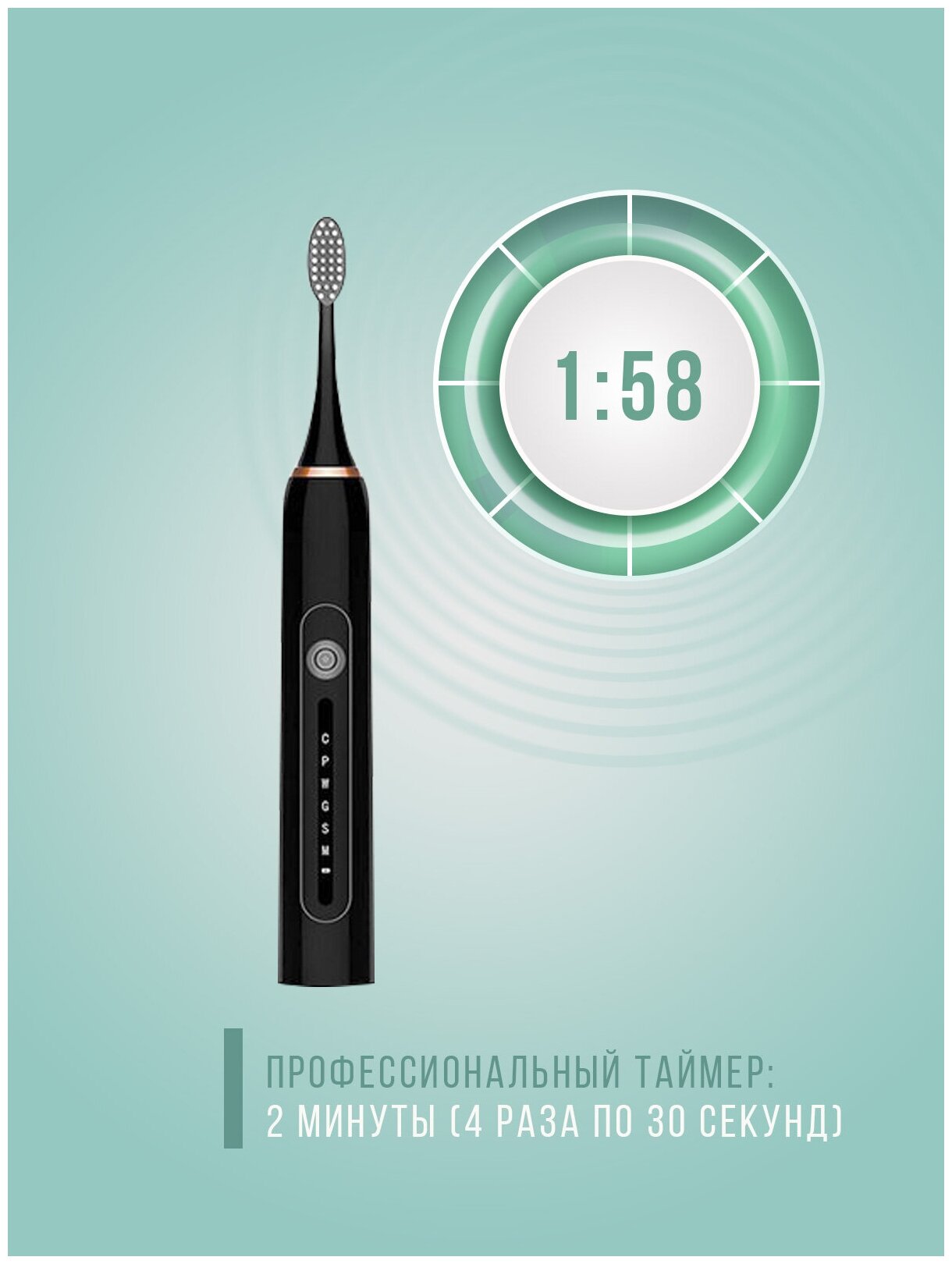 Электрическая зубная щетка Ladial X7, 30 дней без подзарядки (оригинал, 5 лет гарантии), 6 режимов, IPX7, 4 насадки интересное: