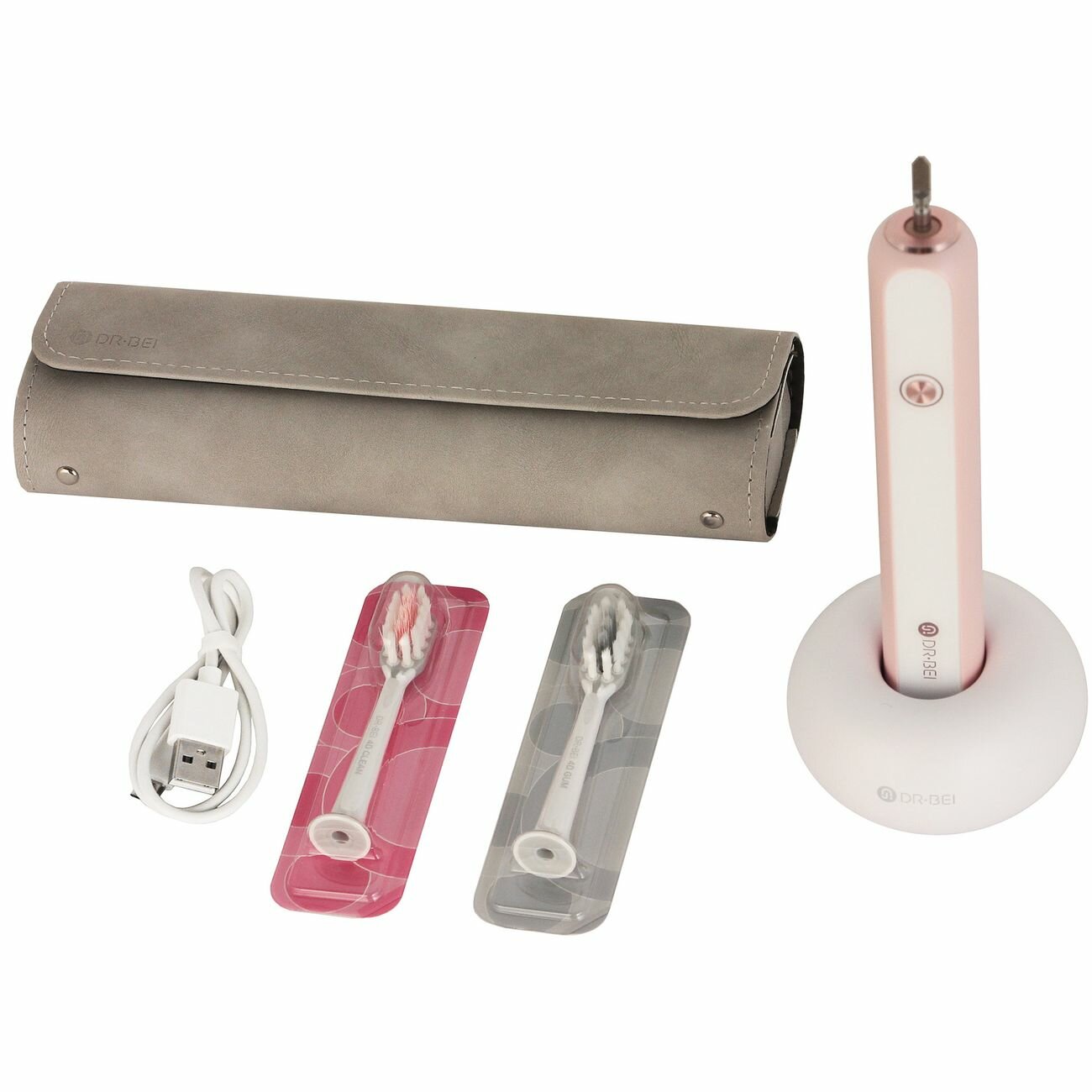 Электрическая зубная щетка DR.BEI S7, отбеливание зубов, 2 сменные насадки + футляр в комплекте, 5 режимов очистки, звуковая, розовый