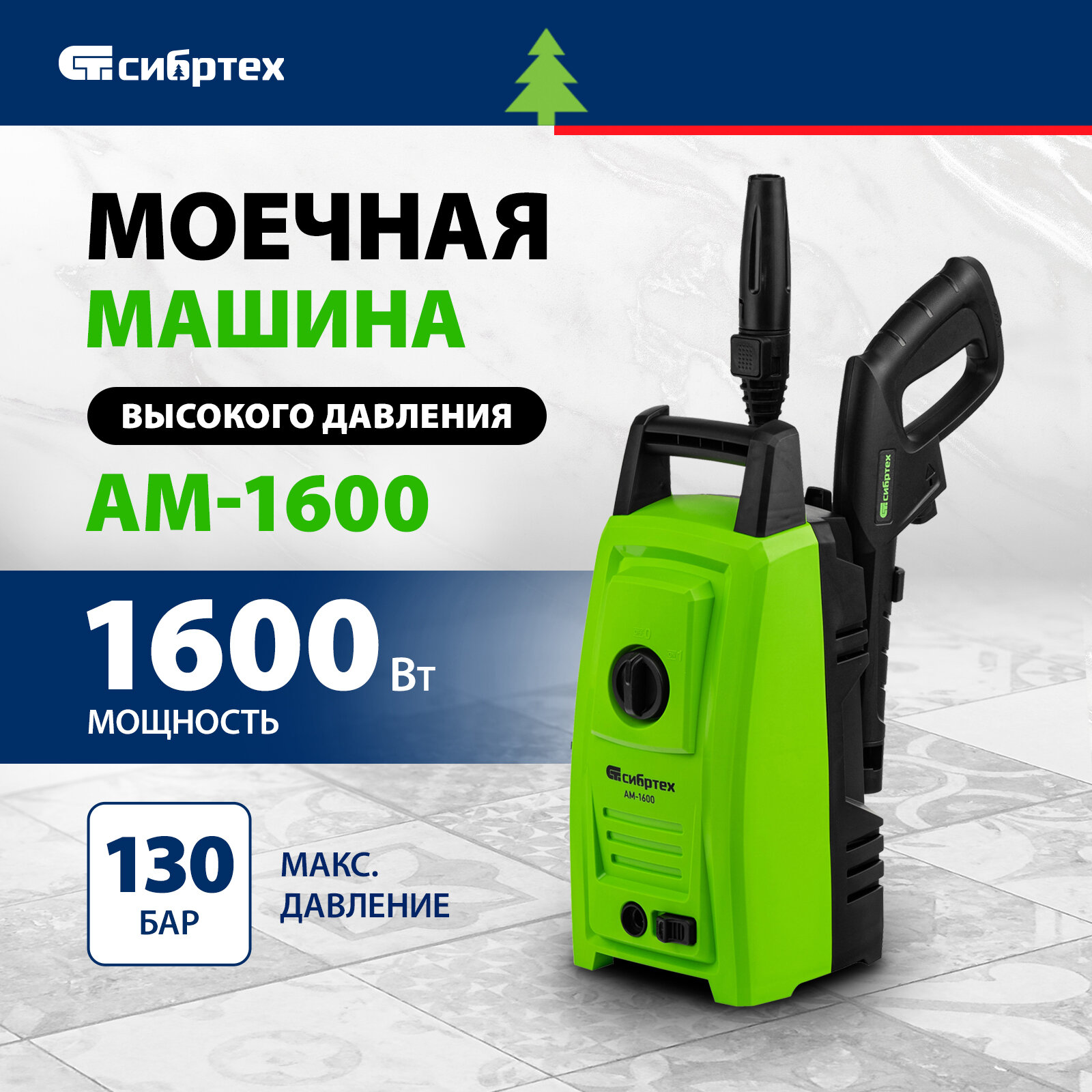 Моечная машина высокого давления АМ-1600, 1600 Вт, 130 бар, 330 л/ч, переносная// Сибртех интересное: