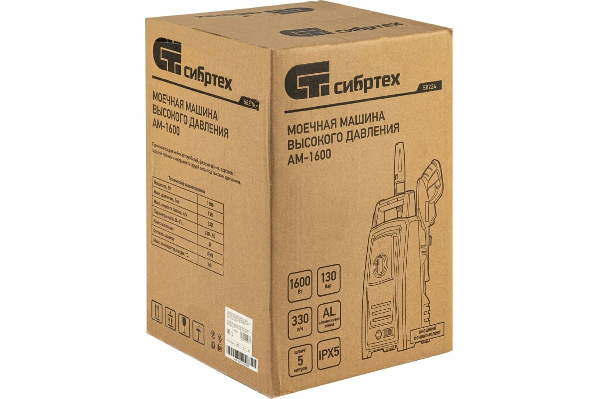 СИБРТЕХ Моечная машина высокого давления АМ-1600, 1600 Вт, 130 бар, 330 л/ч, переносная, Сибртех