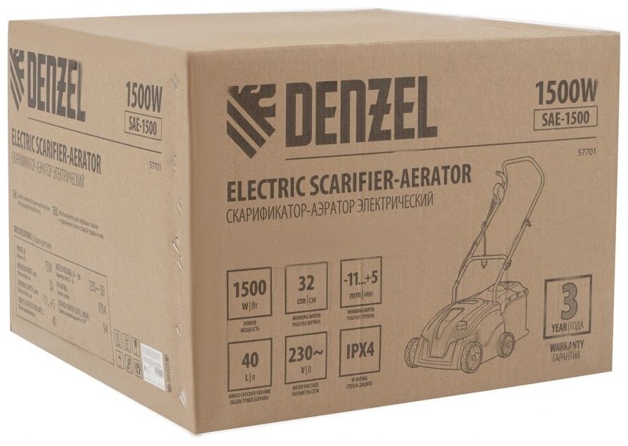 Ниже Вы можете прочитать отзывы на Скарификатор-аэратор электрический SAE-1500 Denzel, 57701, 1500 Вт, -11/+5 см, 32 cм, ознакомится с подробными характеристиками, посмотреть интересные обзоры и фотографии на Скарификатор-аэратор электрический SAE-1500 Denzel, 57701, 1500 Вт, -11/+5 см, 32 cм.