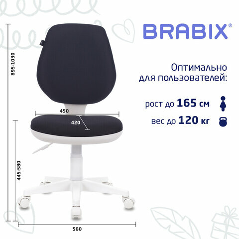 Кресло детское BRABIX "Fancy MG-201W", без подлокотников, пластик белый, серое, 532412, MG-201W_532412