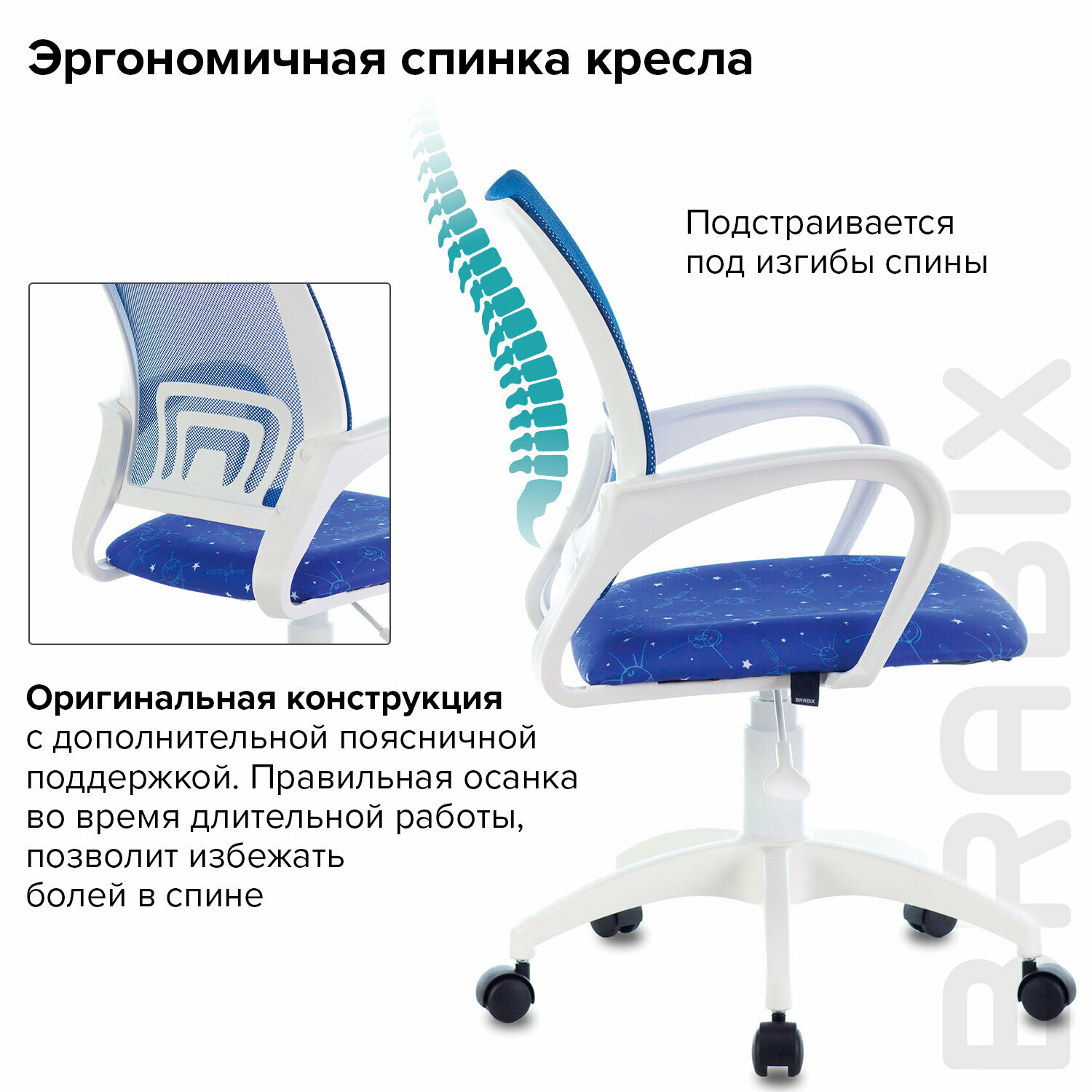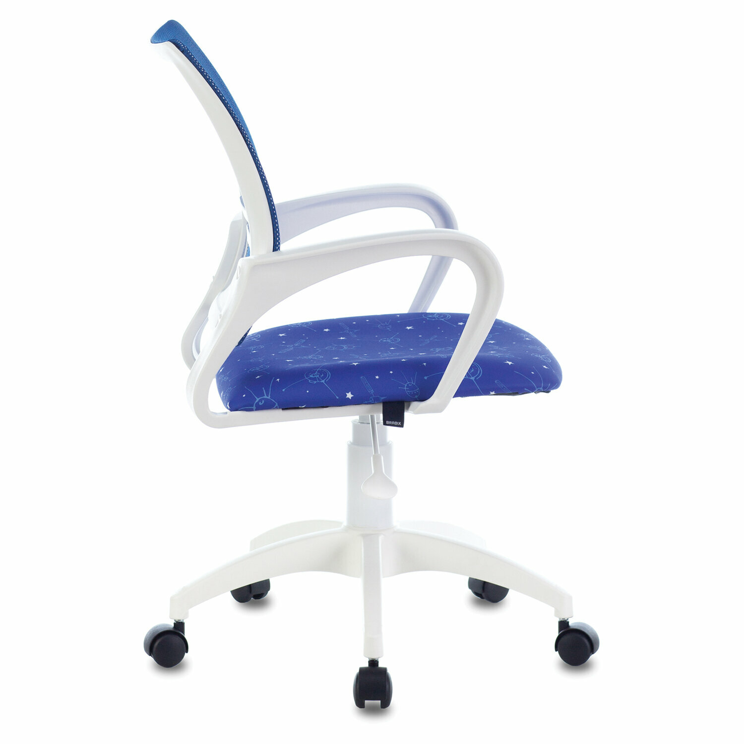Кресло BRABIX "Fly MG-396W" пластик белый, сетка, темно-синее с рисунком "Space"