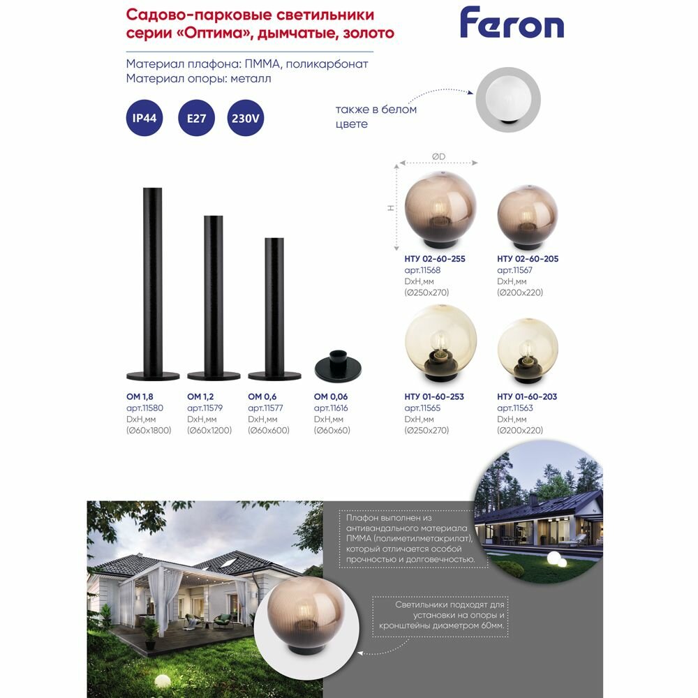 Feron НТУ 01-60-205 Светильник садово-парковый, серии «Оптима» (НТУ) 1*60W, E27, 230V, IP44, 11567