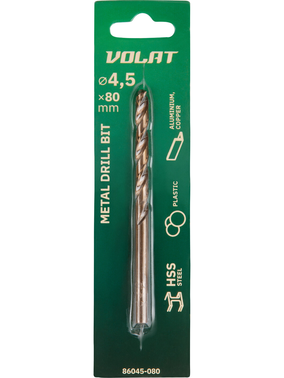Сверло по металлу спиральное 4,5х47х80 мм волат (86045-080)