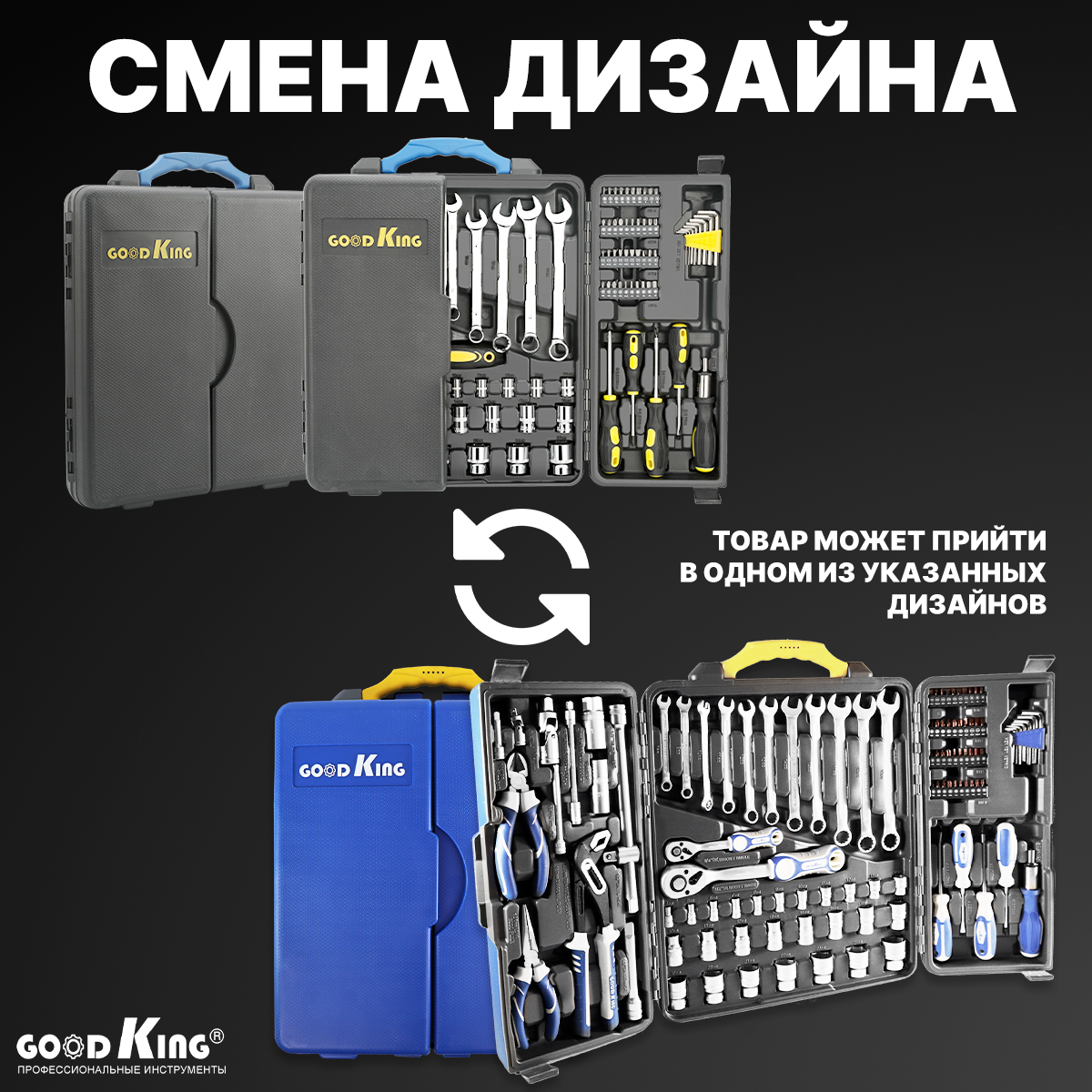 Набор инструментов GOODKING, 110 предметов, трещотка 1/2", 1/4", универсальный, для ремонтных и точных работ (M-10110)