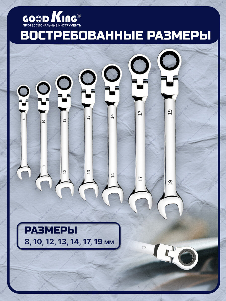 Набор комбинированных трещоточных шарнирных ключей 7 шт. GOODKING GKTK-1107 трещеточный ключ, гаечный ключ, набор инструментов интересное: