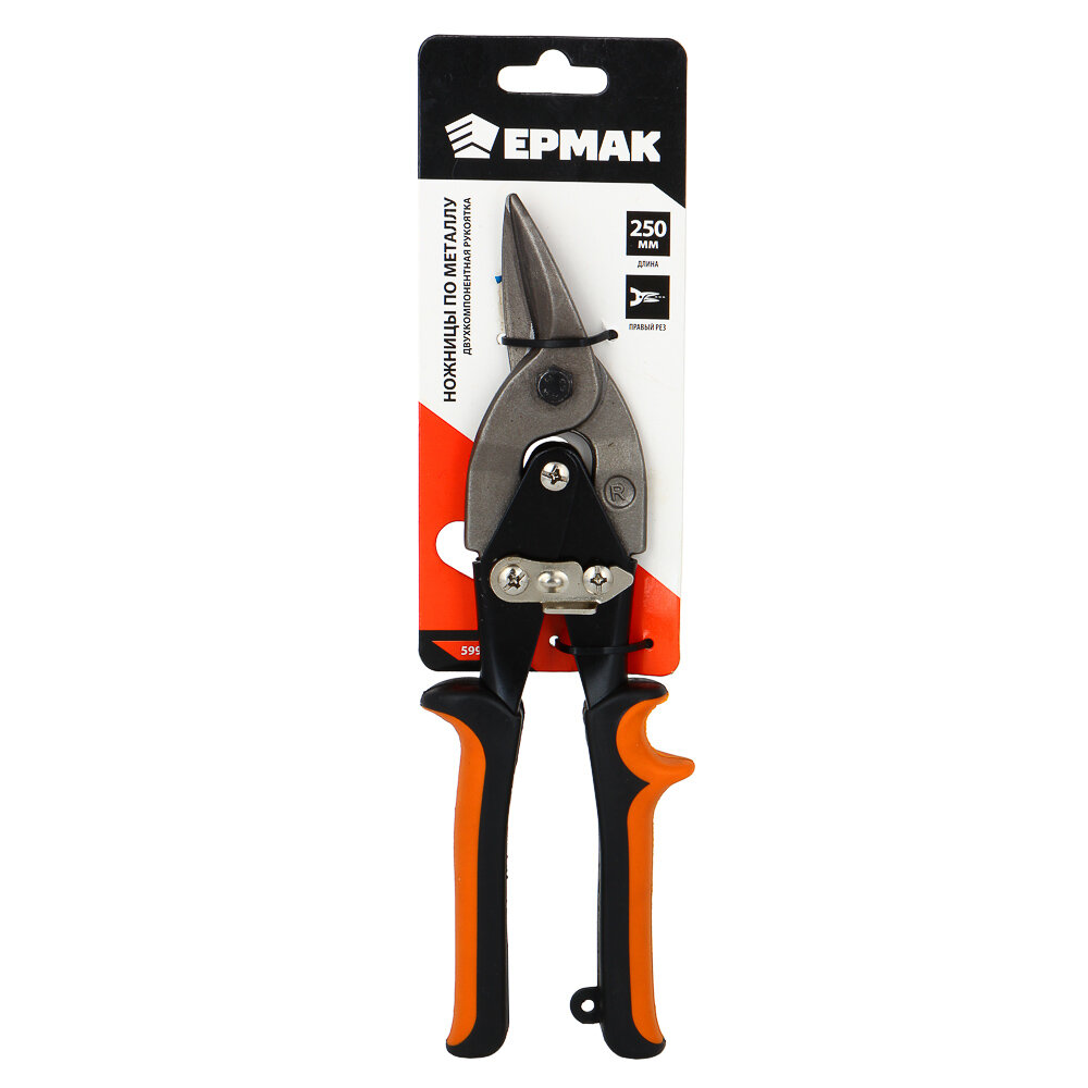 Ножницы по металлу ермак 250 мм, двухкомпонентная рукоятка, правый