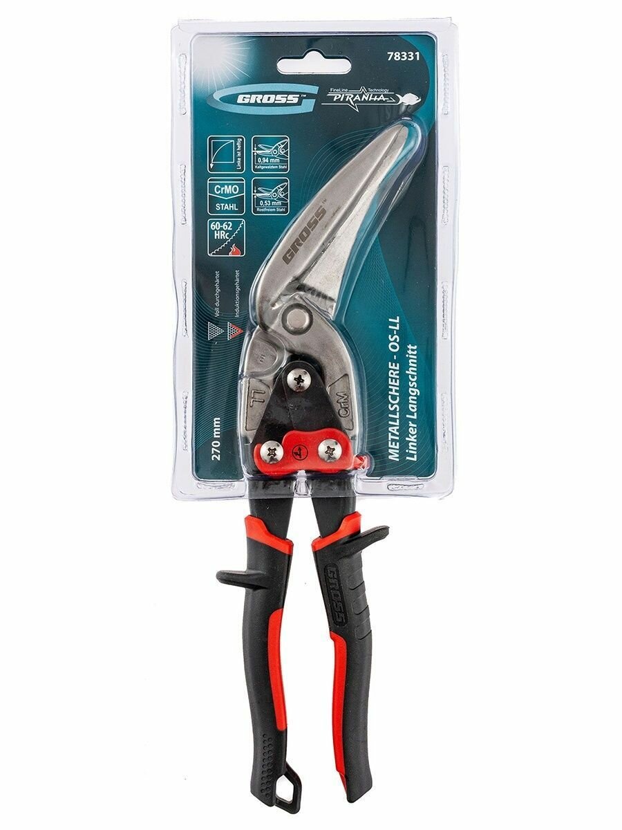 GROSS Ножницы по металлу "Piranha", 270 мм, прямой и левый проходной рез, сталь СrMo, двухкомпонентные рукоятки Gross, ( 78331 )