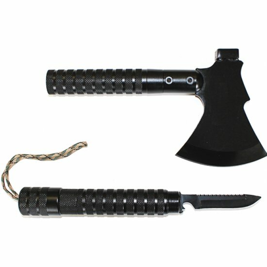 | Дополнительная информация | в комплект поставки входит топор, 2 удлинителя, нож с прямой и серрейторной заточкой, магниевое огниво, свисток, стеклобой, компас; материал рукоятки алюминий |