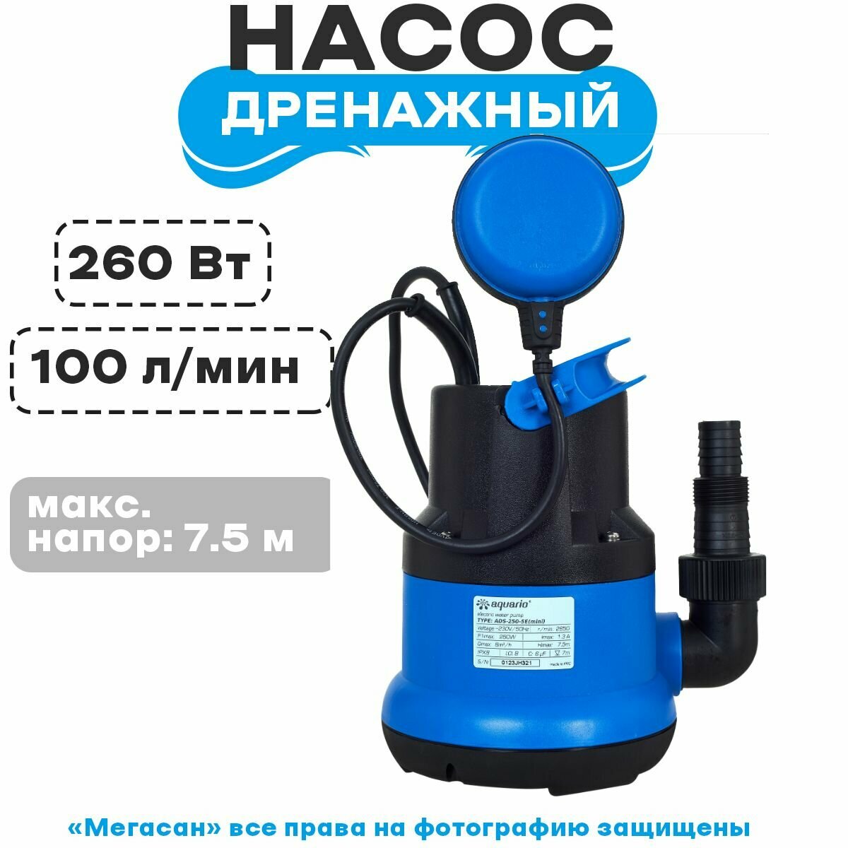 Дренажный насос Aquario (Акварио) ADS-250-5E (H-6 м. Q-100 л/мин P1-250 Вт)