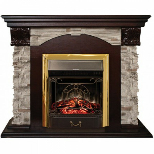 Купить Электрокамин RealFlame Dublin Rock с очагом Majestic Lux Brass Античный дуб (AO-215)