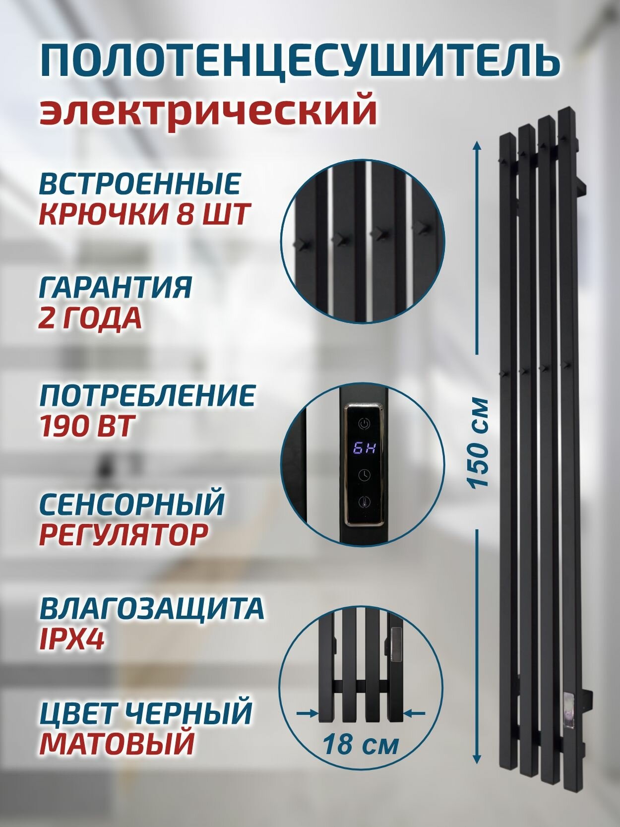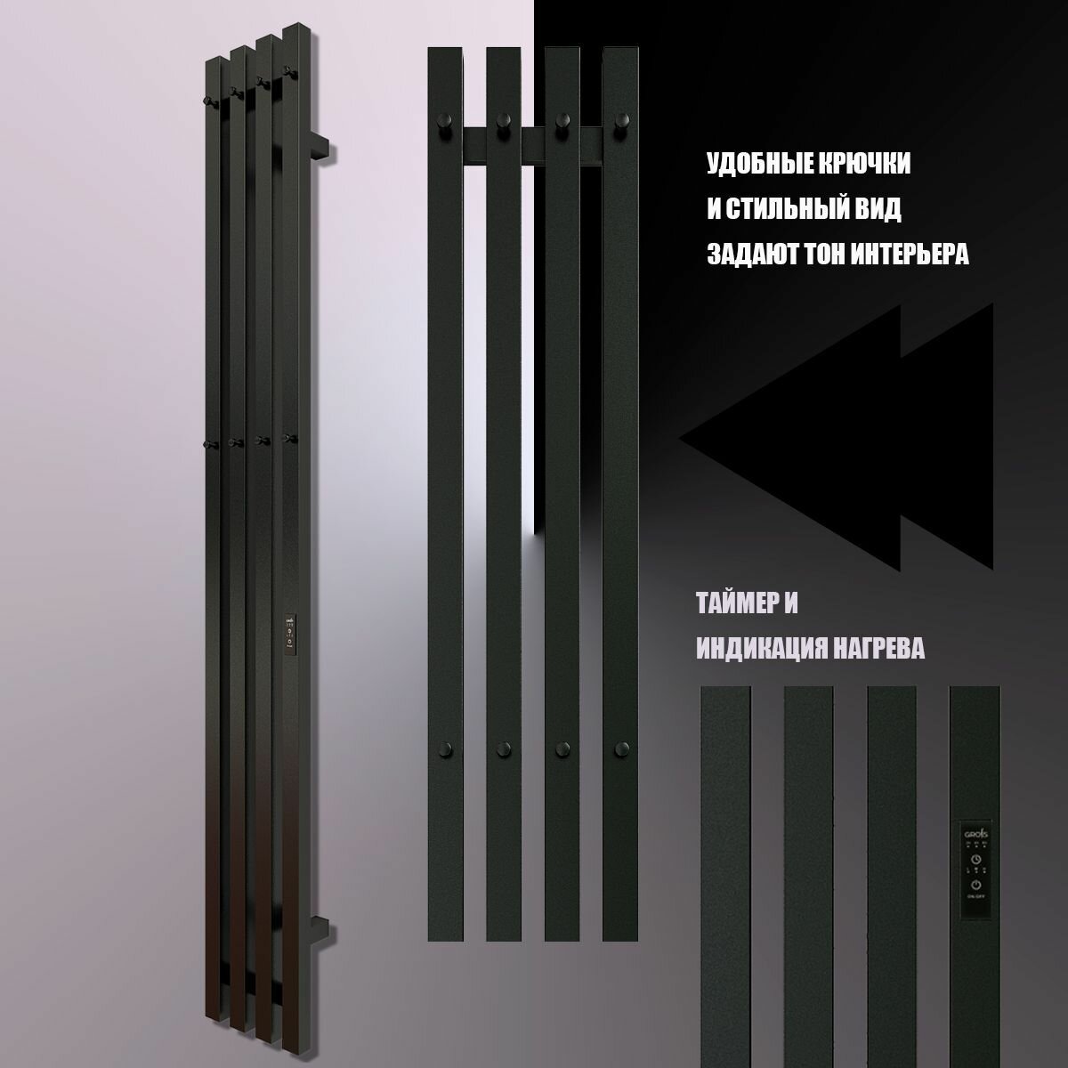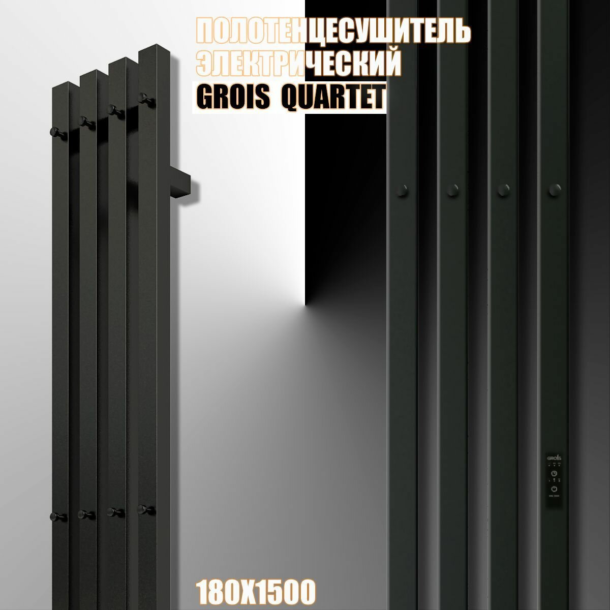 Купить Полотенцесушитель Электрич. с/т GROIS Quartet GR-125 180х1500 П3 RAL 9005 R черный матовый