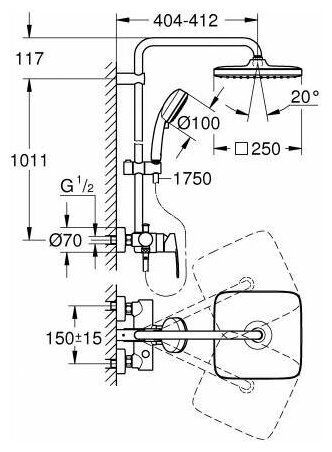 | Форма верхнего душа | квадратная |