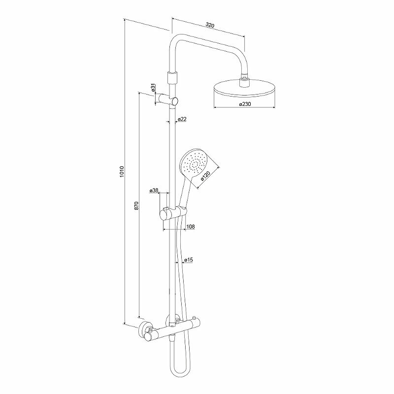 DX218091000 Option, душевая система с ТМС для душа: верхний душ 230мм, ручной душ 120мм, 1 режим, шт