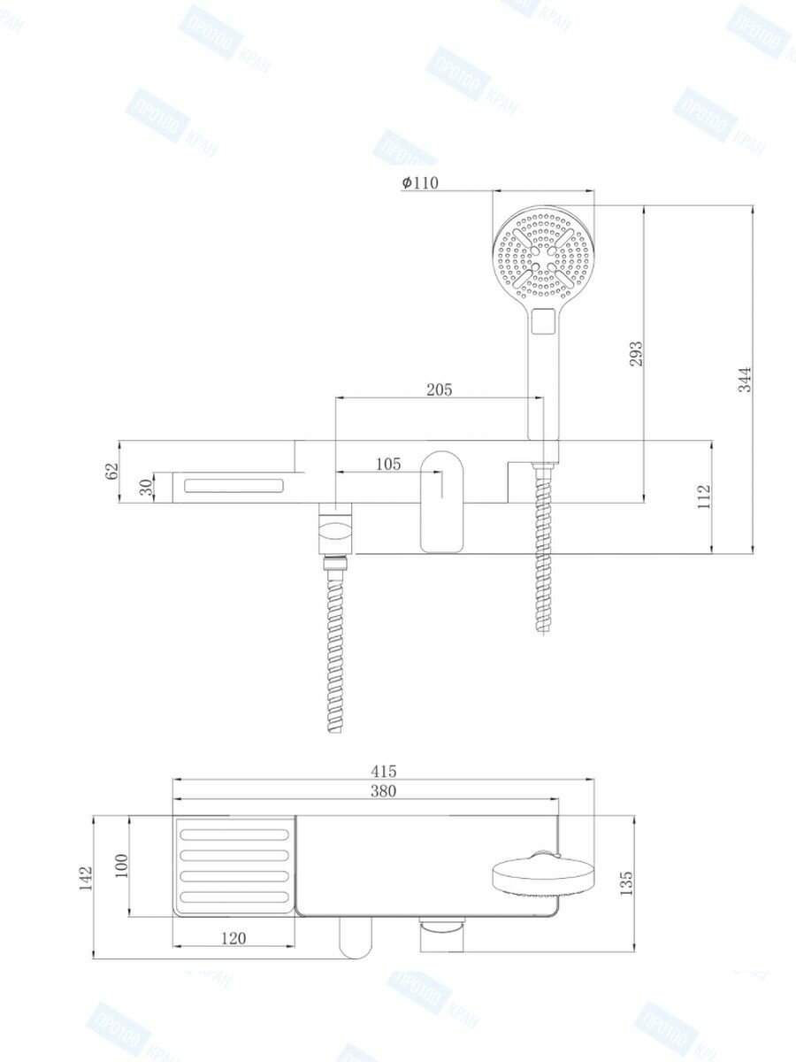 | Комплектация | Смеситель. 3-функциональная лейка, настенное крепление для лейки. Шланг. |