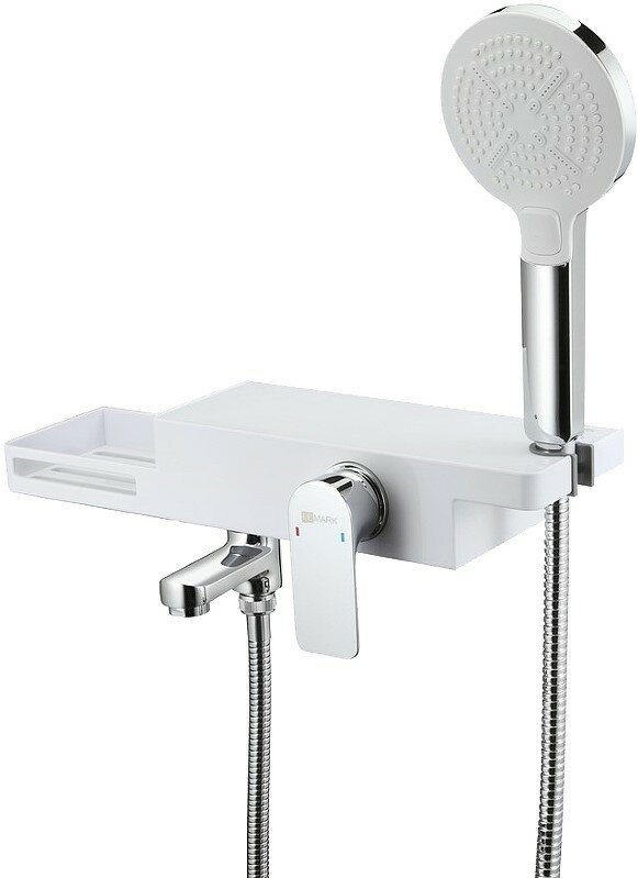 Lemark Смеситель Unibox для ванны и душа с гарнитуром и мыльницей, белый, хром, LM6914CW