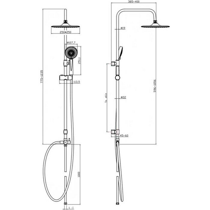 | Особенности | S-образные эксцентрики / держатель душевой лейки / регулируемый верхний душ / защита от скручивания |