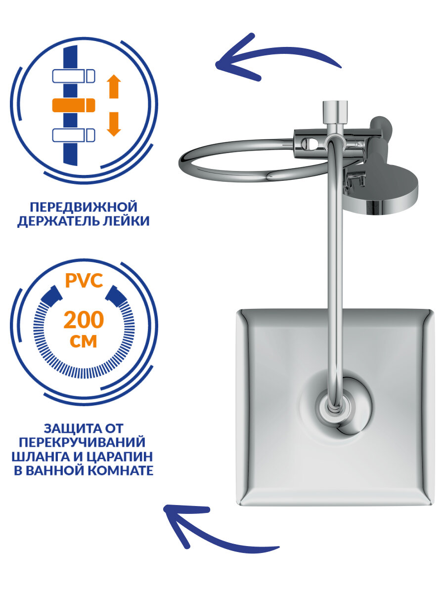 | Особенности | S-образные эксцентрики / держатель душевой лейки / регулируемый верхний душ / защита от скручивания |