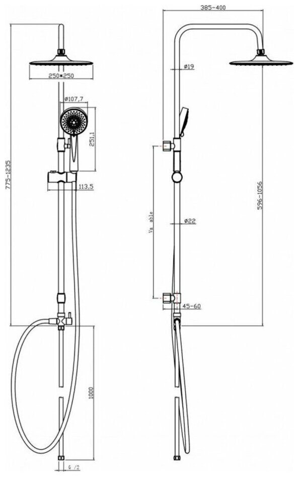 | Особенности | S-образные эксцентрики / держатель душевой лейки / регулируемый верхний душ / защита от скручивания |