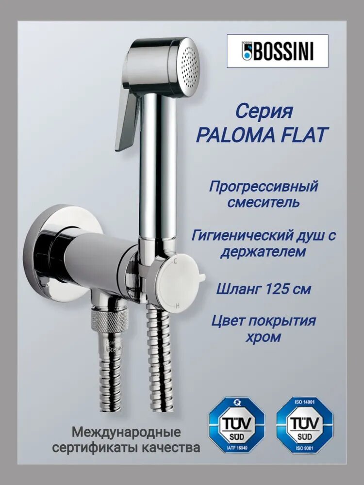 Bossini Paloma Flat Комплект гигиенический: прогрессивный смеситель,лейка с клапаном подачи воды, шланг 1250 мм, хром (030)