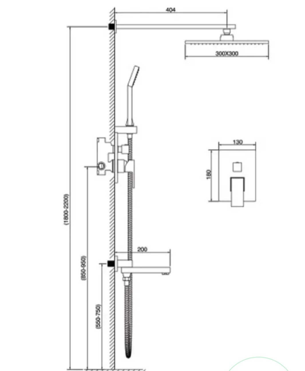 | Комплектация | Смеситель / душевая лейка / шланг для душа / верхний душ / излив / настенный держатель |