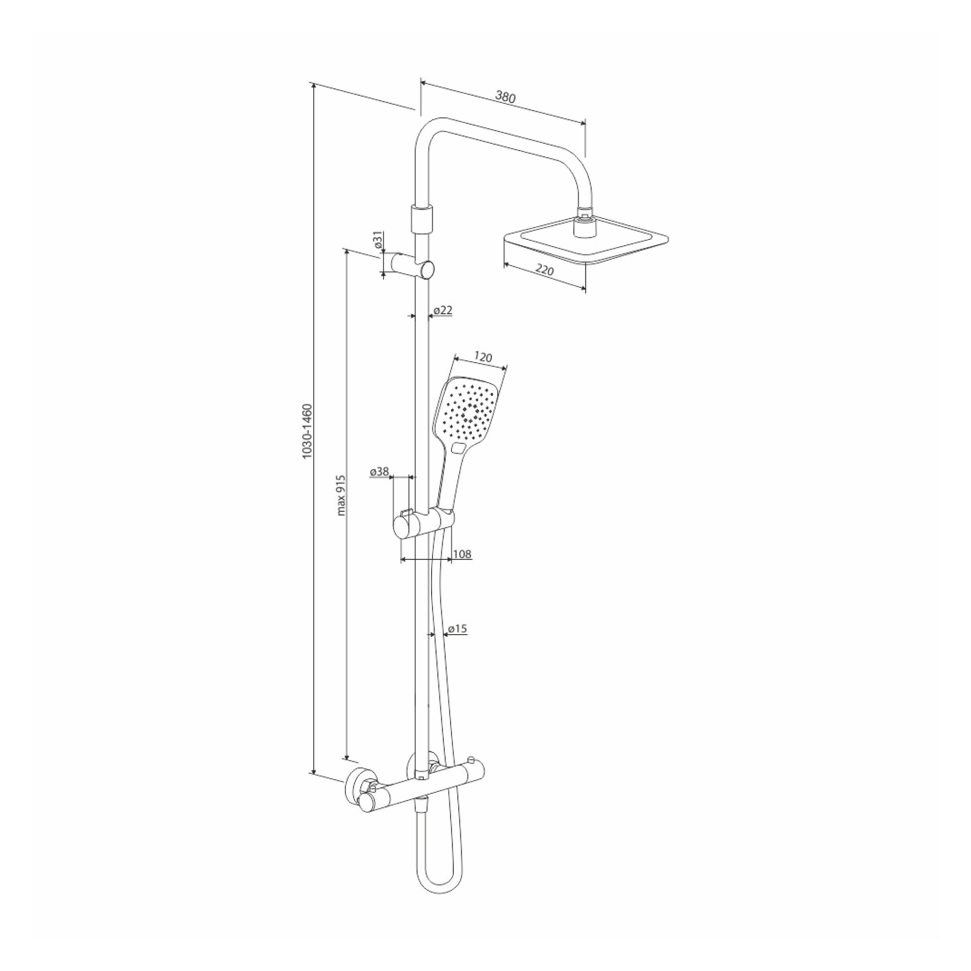 Душевая система Damixa Option DX218092000 с термостатом, квадратная лейка
