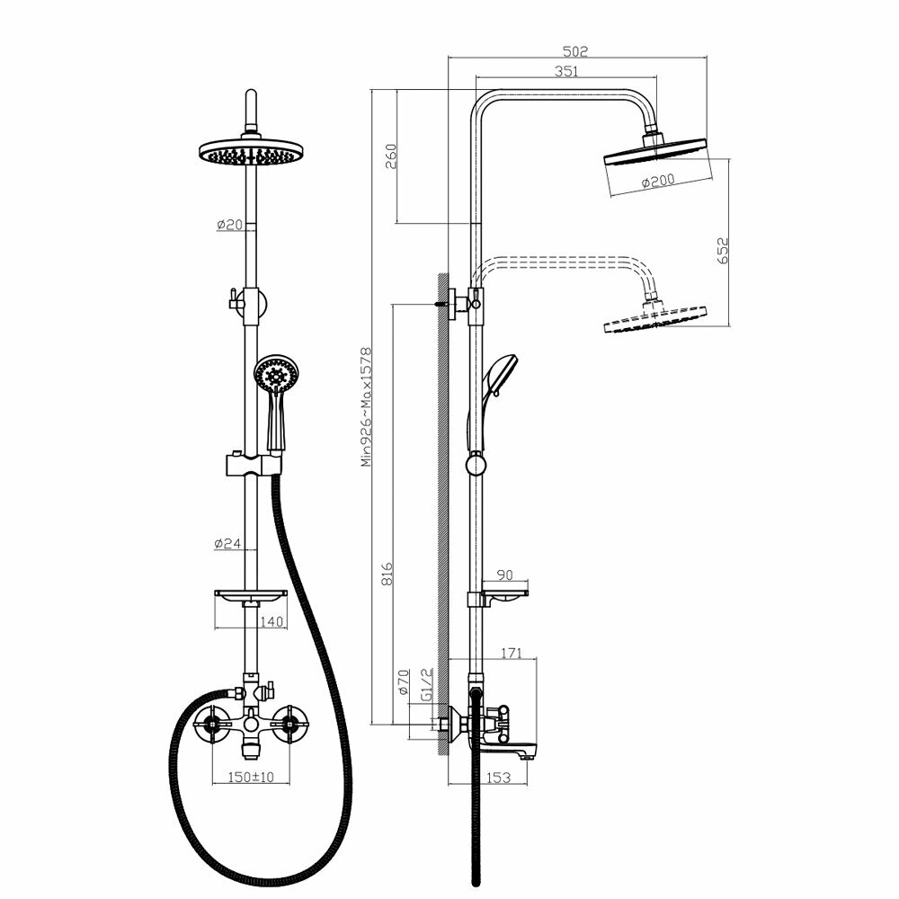 | Количество режимов верхнего душа | 1 |