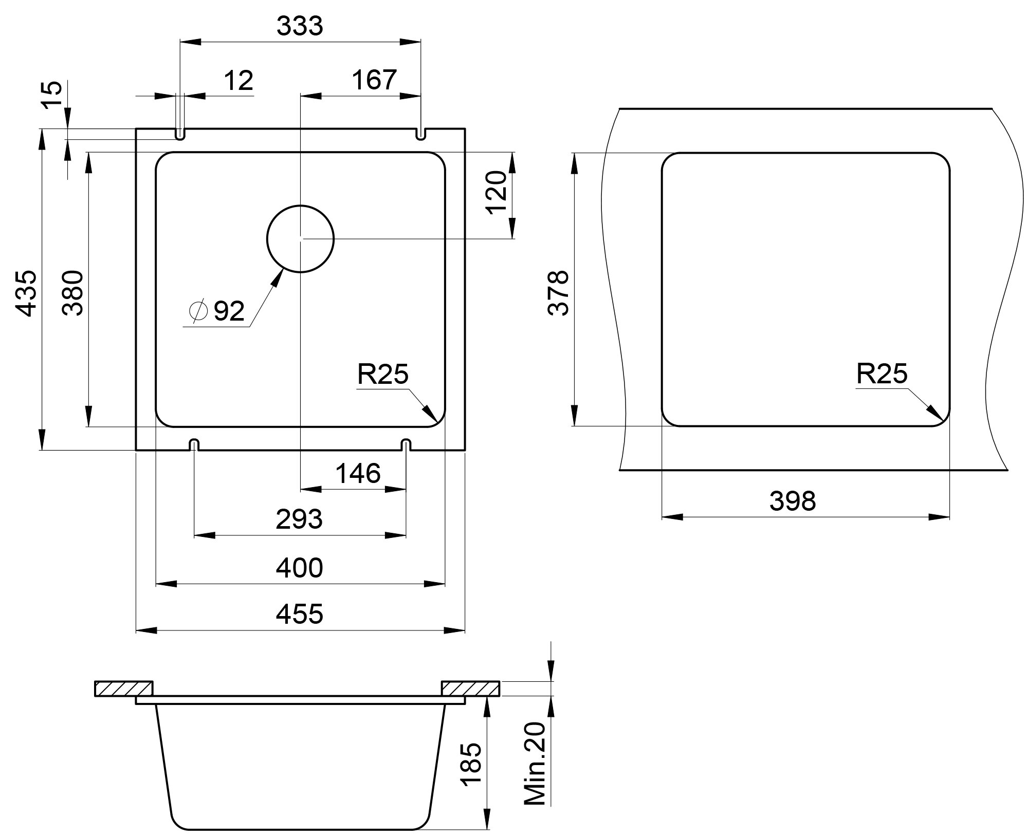 Мойка GRANULA GR-3801 чёрный 455х435мм