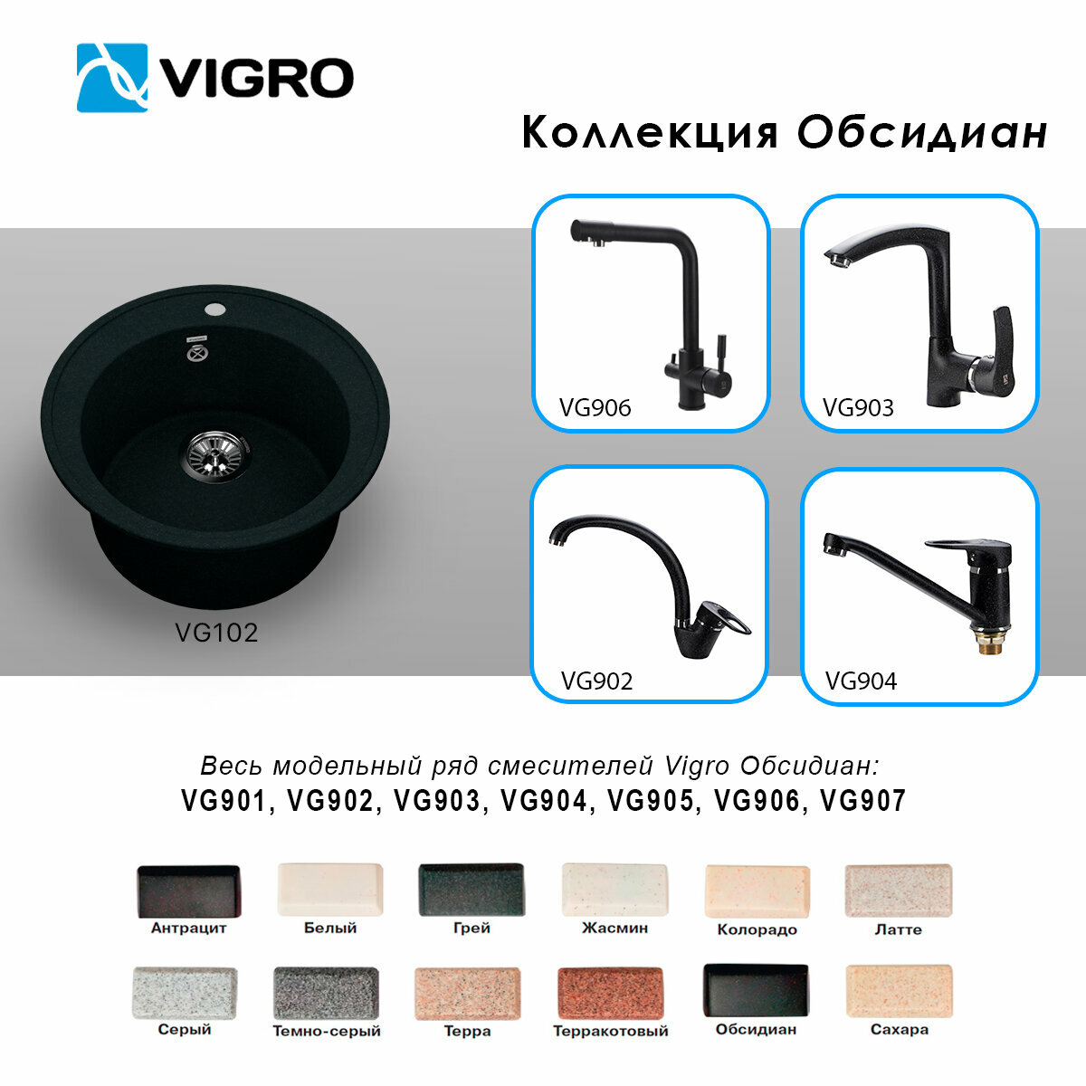 Ниже Вы можете прочитать отзывы на Кухонная мойка VIGRO VG102 обсидиан (470*470*190), ознакомится с подробными характеристиками, посмотреть интересные обзоры и фотографии на Кухонная мойка VIGRO VG102 обсидиан (470*470*190).