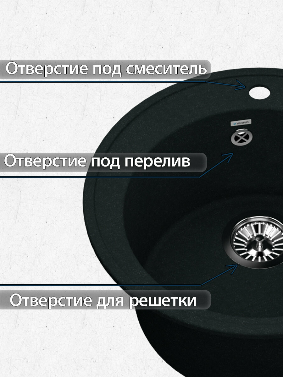 Купить Кухонная мойка VIGRO VG102 обсидиан (470*470*190)