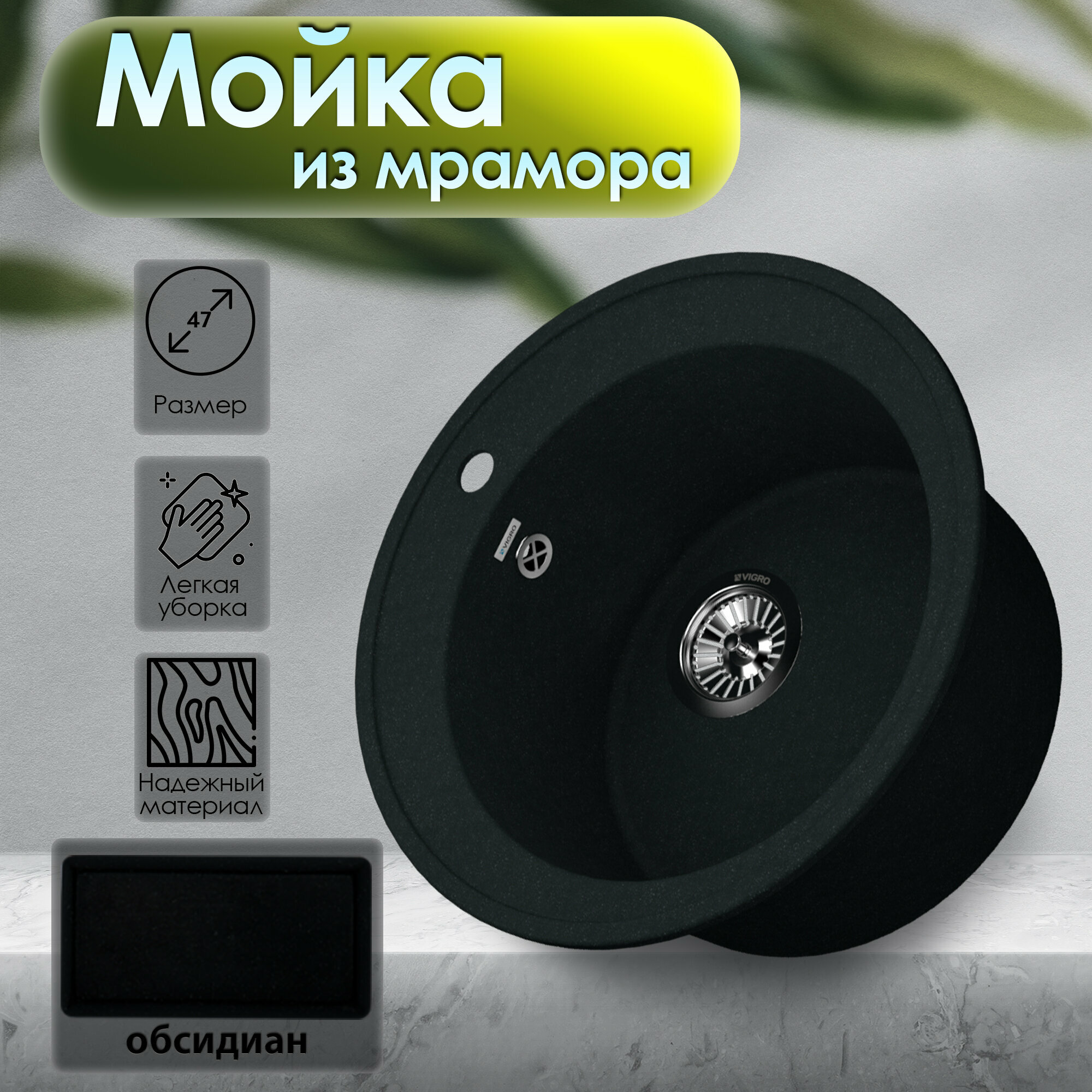 Кухонная мойка из искусственного камня Vigro VG102 обсидиан (470*470*190)
