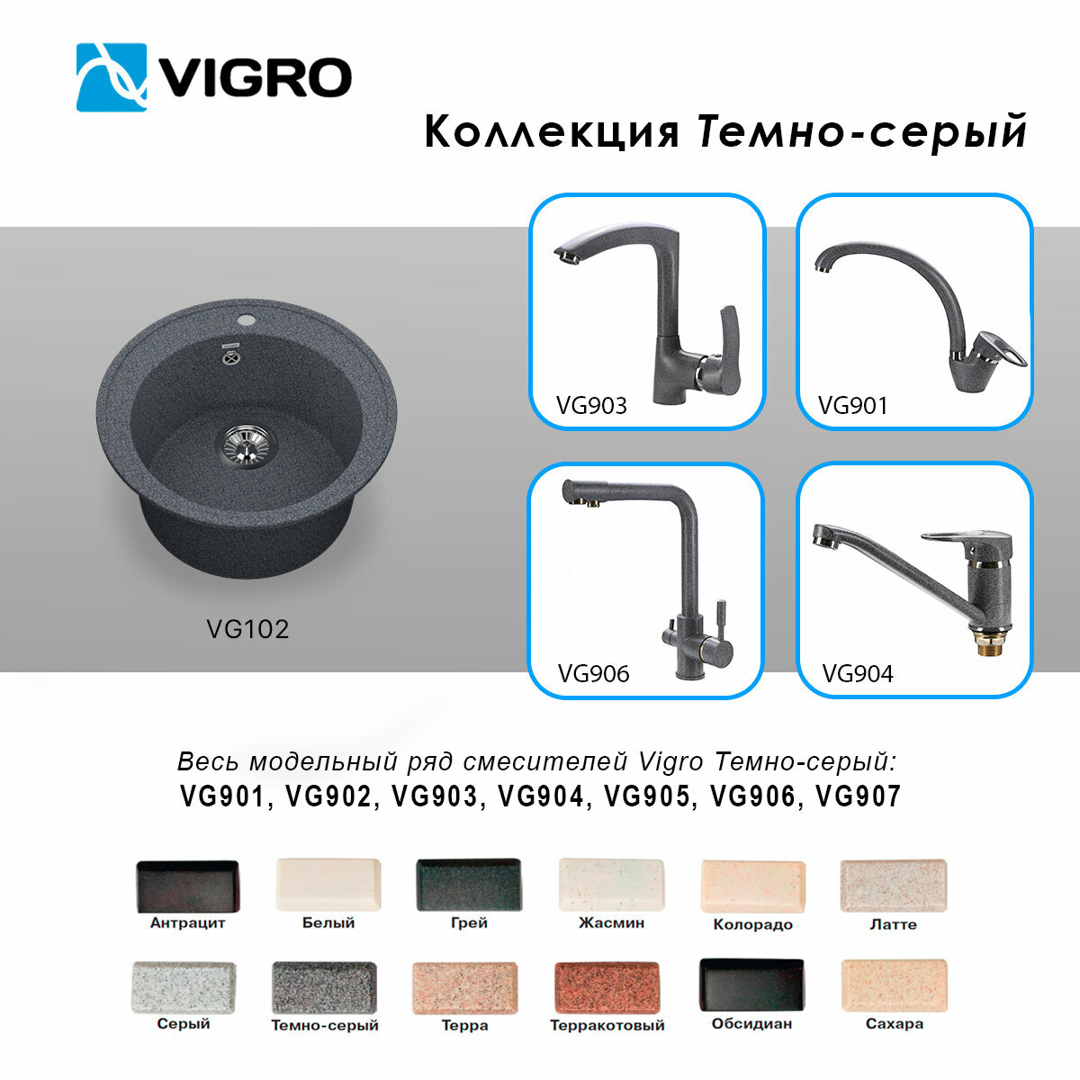Ниже Вы можете прочитать отзывы на Кухонная мойка VIGRO VG102 темно-серый (470*470*190), ознакомится с подробными характеристиками, посмотреть интересные обзоры и фотографии на Кухонная мойка VIGRO VG102 темно-серый (470*470*190).